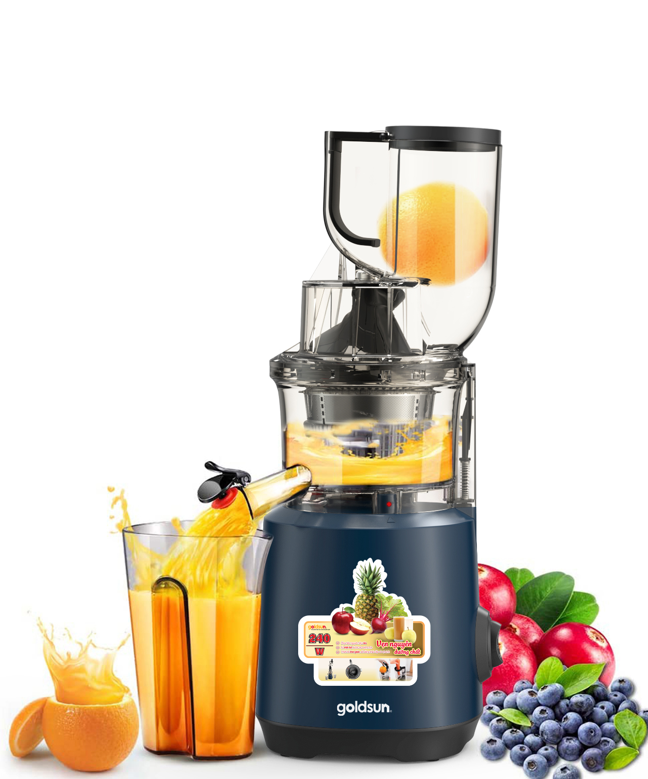Máy ép chậm Goldsun GFJ4501 là dòng máy ép trái cây hoa quả hoạt động dựa trên nguyên lý trục vít dạng xoắn ốc thu nhỏ dần để ép trái cây thu lấy nước và hỗ trợ giữ được hàm lượng chất dinh dưỡng cao hơn 3 lần so với máy ép thông thường. Sản phẩm được thiết kế hài hòa với cảm giác sang trọng, hiện đại và tinh tế với độ bền cao theo thời gian sử dụng, phù hợp với không gian bếp gia đình bạn.