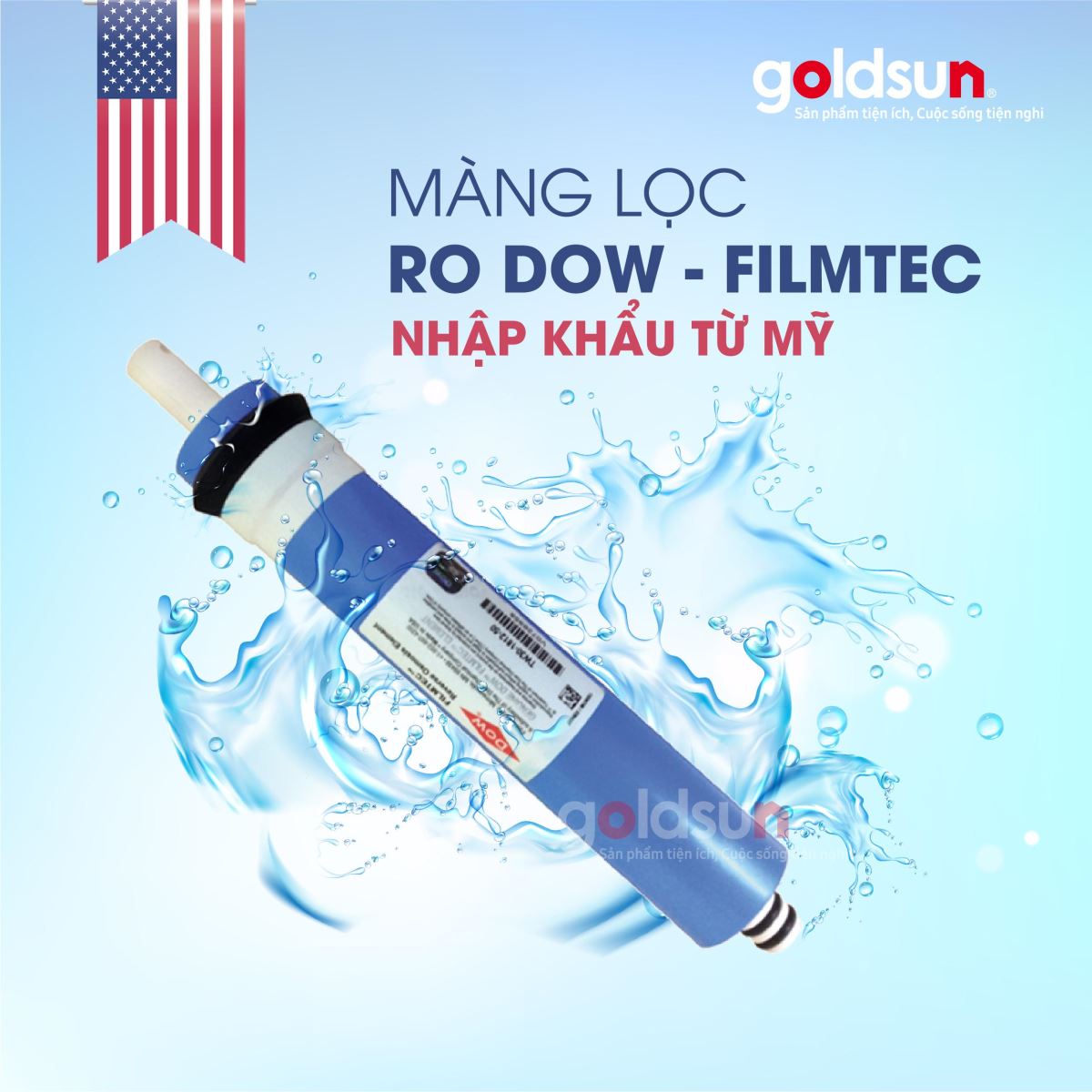 Máy lọc nước Goldsun sử dụng màng lọc Aqualast nhập khẩu từ Tập đoàn DOW (thương hiệu hàng đầu tại Mỹ) - màng lọc hiện đại và tốt nhất thế giới vào thời điểm hiện tại làm tăng tới 133% lượng nước tinh khiết thu hồi được so với màng lọc thông thường và tiết kiệm đến 82% lượng nước thải. Màng lọc này giúp máy lọc nước Goldsun có thể xử lý được nhiều nguồn nước đầu vào khác nhau: nước máy, nước ngầm, nước lợ,... có TDS cao (1000-3000mg/l), giải quyết nỗi lo chất lượng nguồn nước cấp biến động. Ngoài ra, màng Aqualast còn giúp tăng tuổi thọ của lõi lọc số 1, 2, 3 nâng cao hiệu suất sử dụng, tiết kiệm chi phí toàn diện.