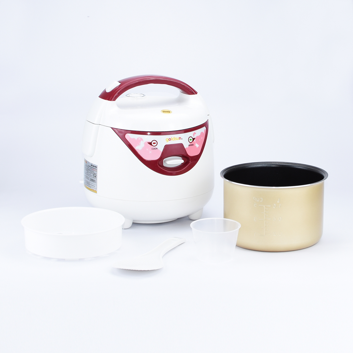 Nồi Cơm Điện Goldsun 3D ARC-GW100 (1 lít) - Trắng Phối Đỏ có kiểu dáng nắp gài tiện dụng với thiết kế nhỏ gọn và đẹp mắt. Chất liệu vỏ nồi bằng nhựa tổng hợp cao cấp, bền bỉ và dễ dàng lau chùi khi bám bẩn.